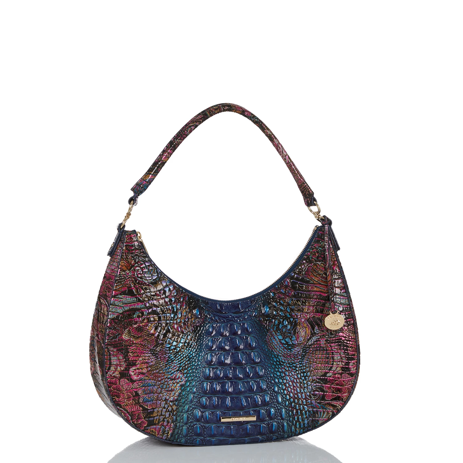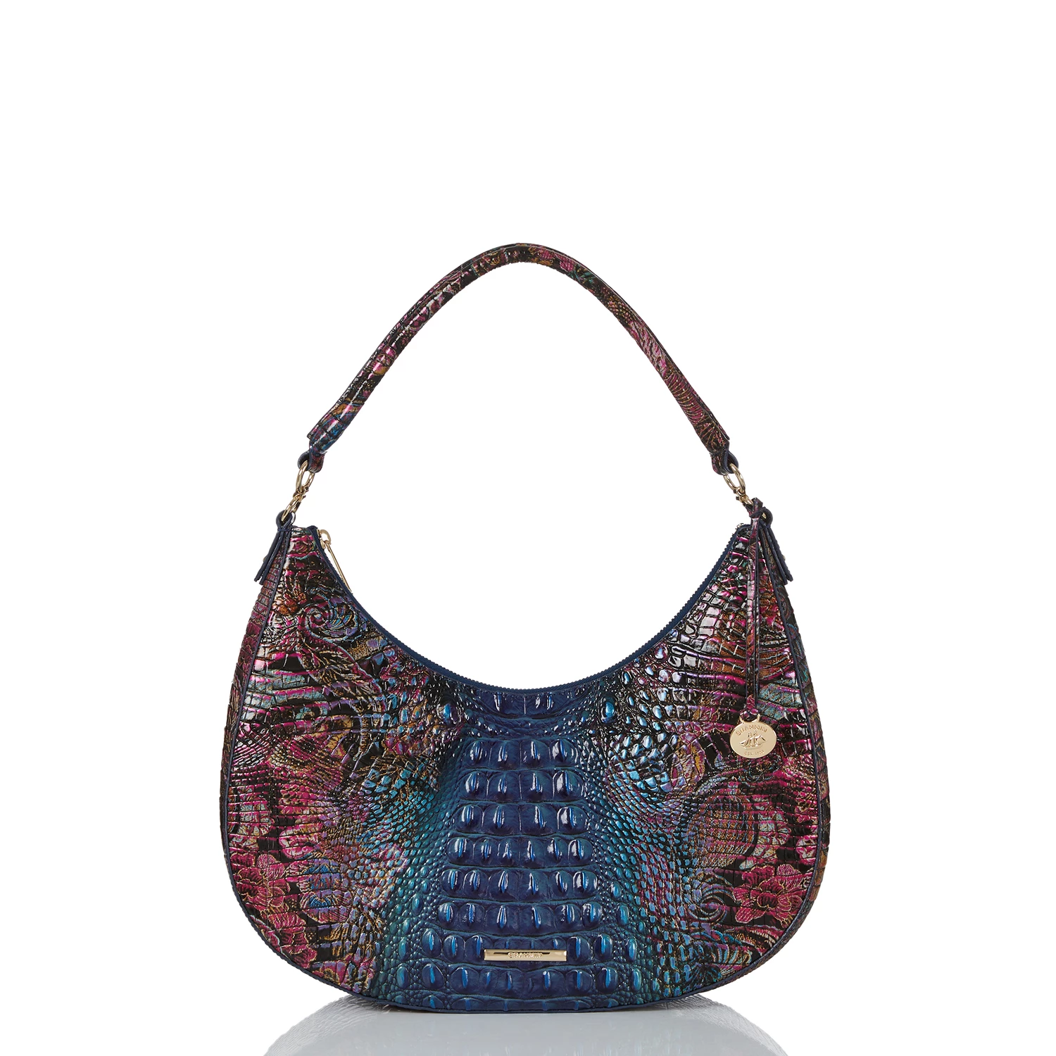 Featured in Estate Ombre Melbourne, this is a sophisticated ombre with a rich blue transitioning to an antique inspired lace floral. Made with genuine croc-embossed leather.