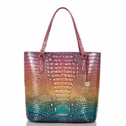 Featured in Horizon Ombre Melbourne, a feel-good ombre inspired by the summer sunset. This skyline of colors features sunset yellow, clay red, dusty pink, violet quartz and deep teal. The iridescent foil finish gives this a brilliant glow that inspires. Made with genuine croc-embossed leather.