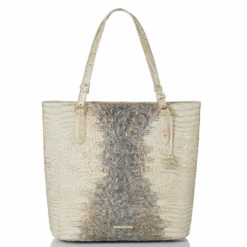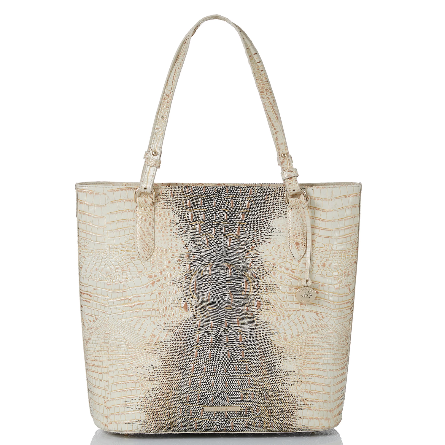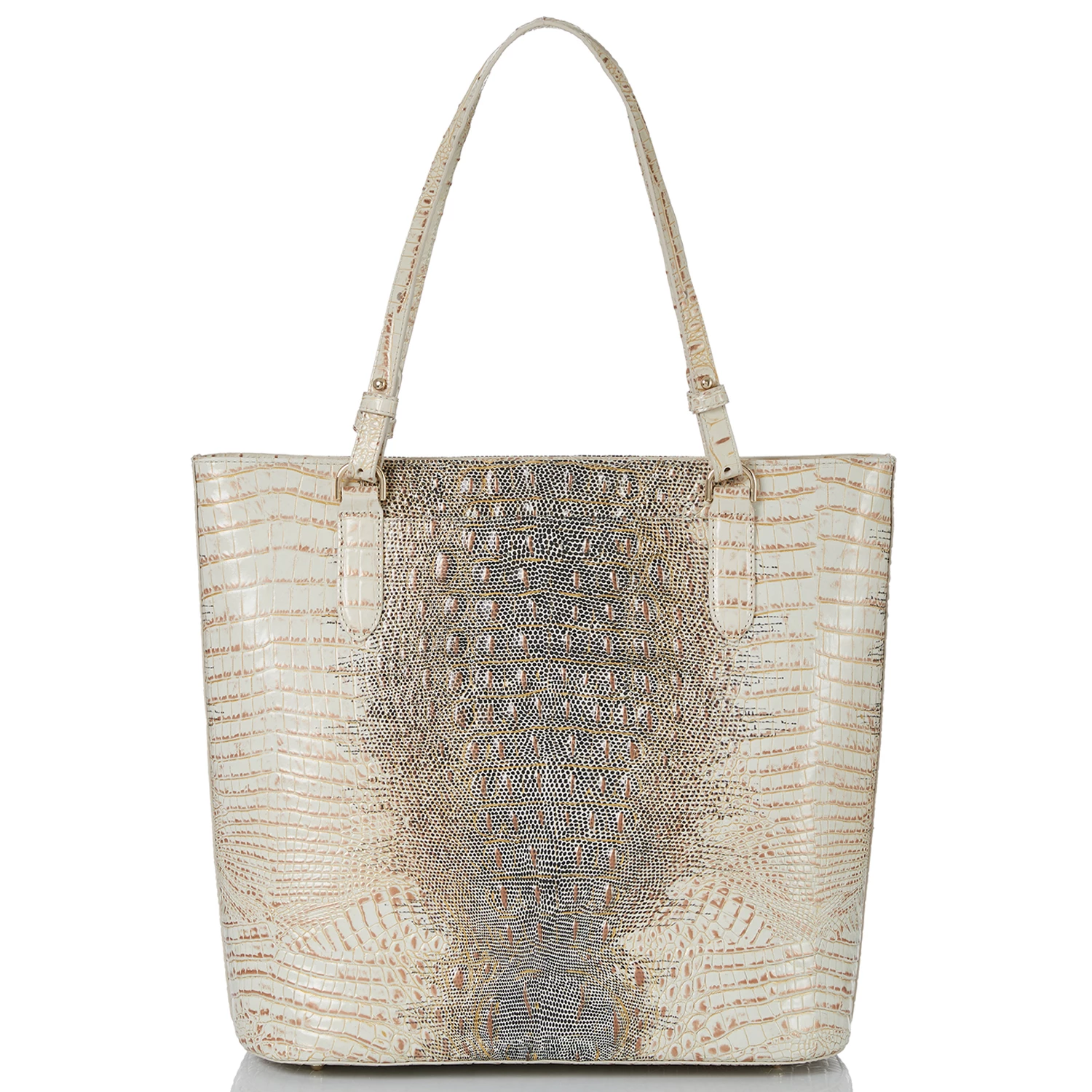 Featured in Ivory Iguana Melbourne, an elevated new neutral. This versatile warm cream features gold accents that lend luxury to the look. This also features hints of a lizard print for added dimension. Made with genuine croc-embossed leather.