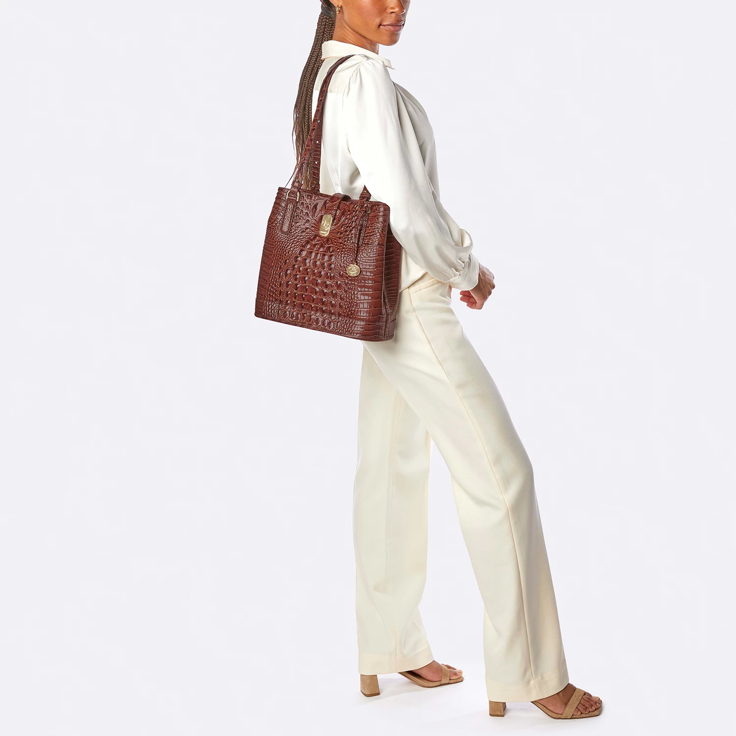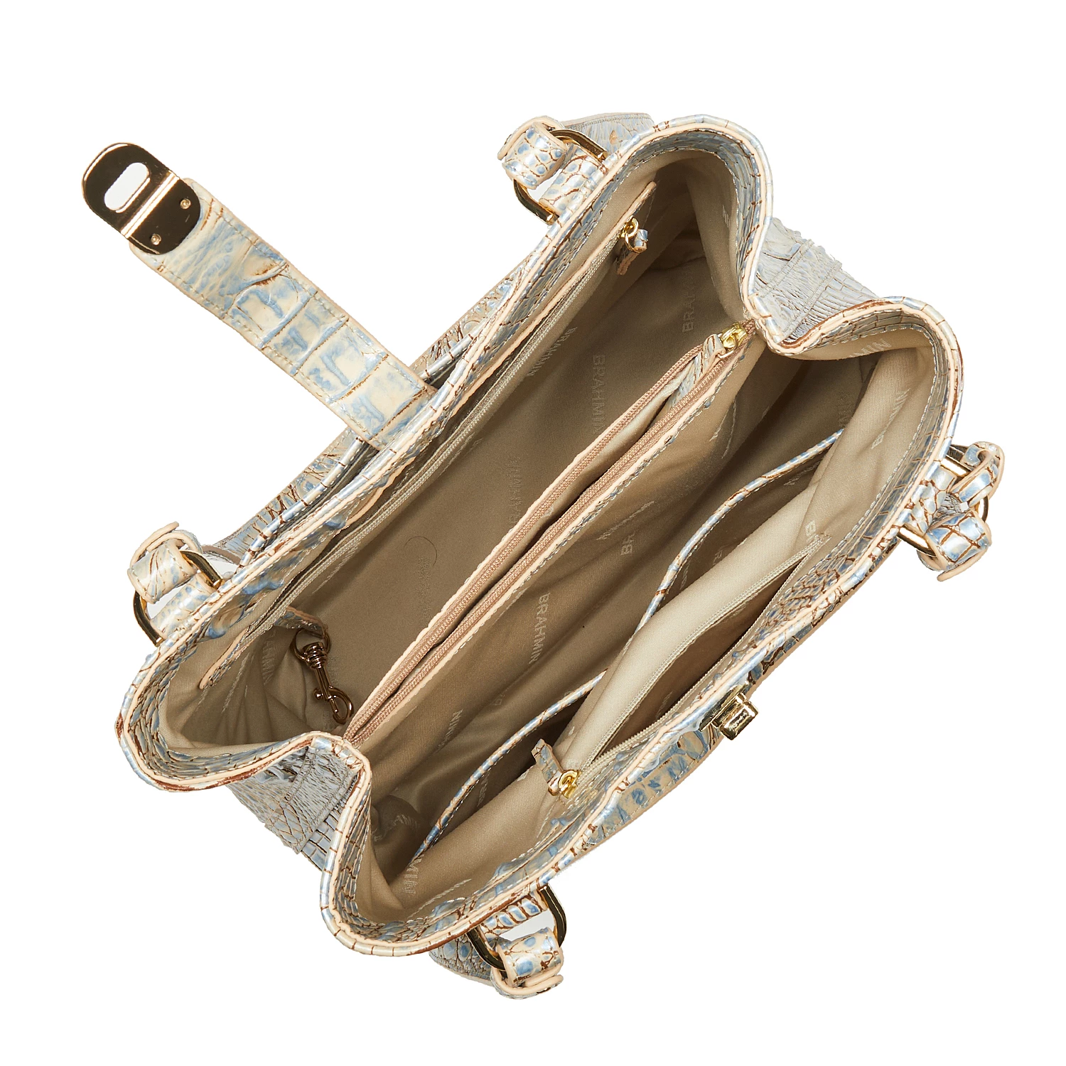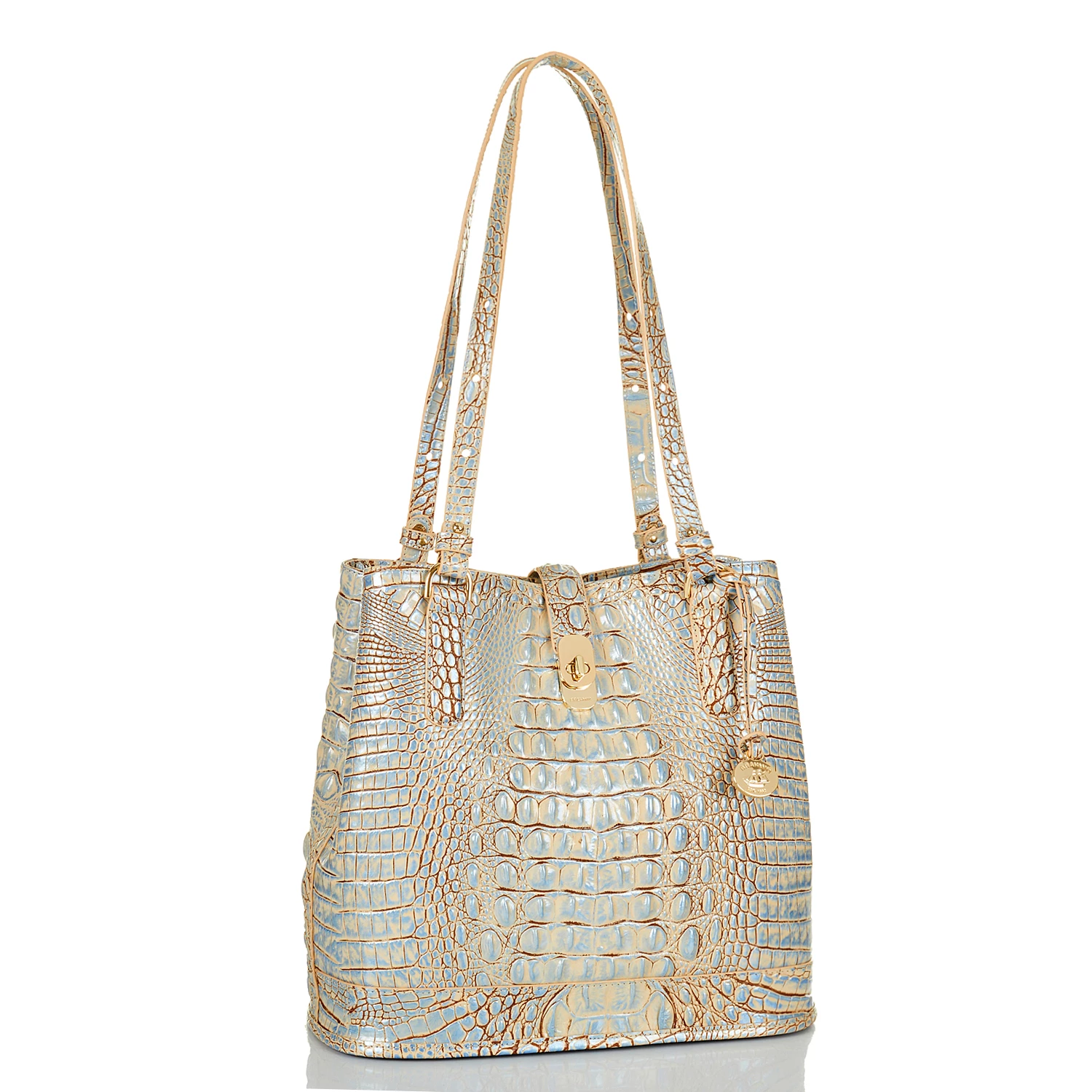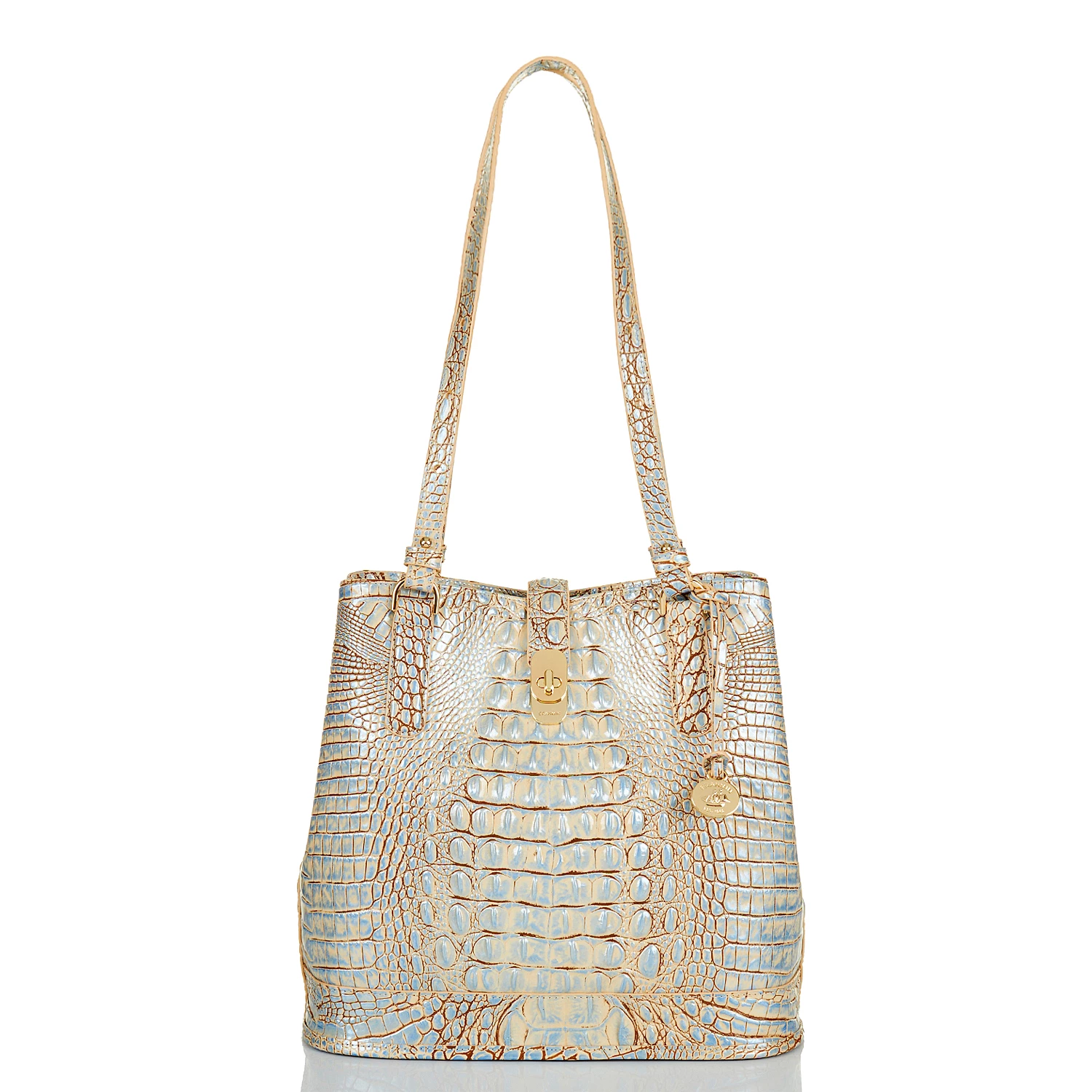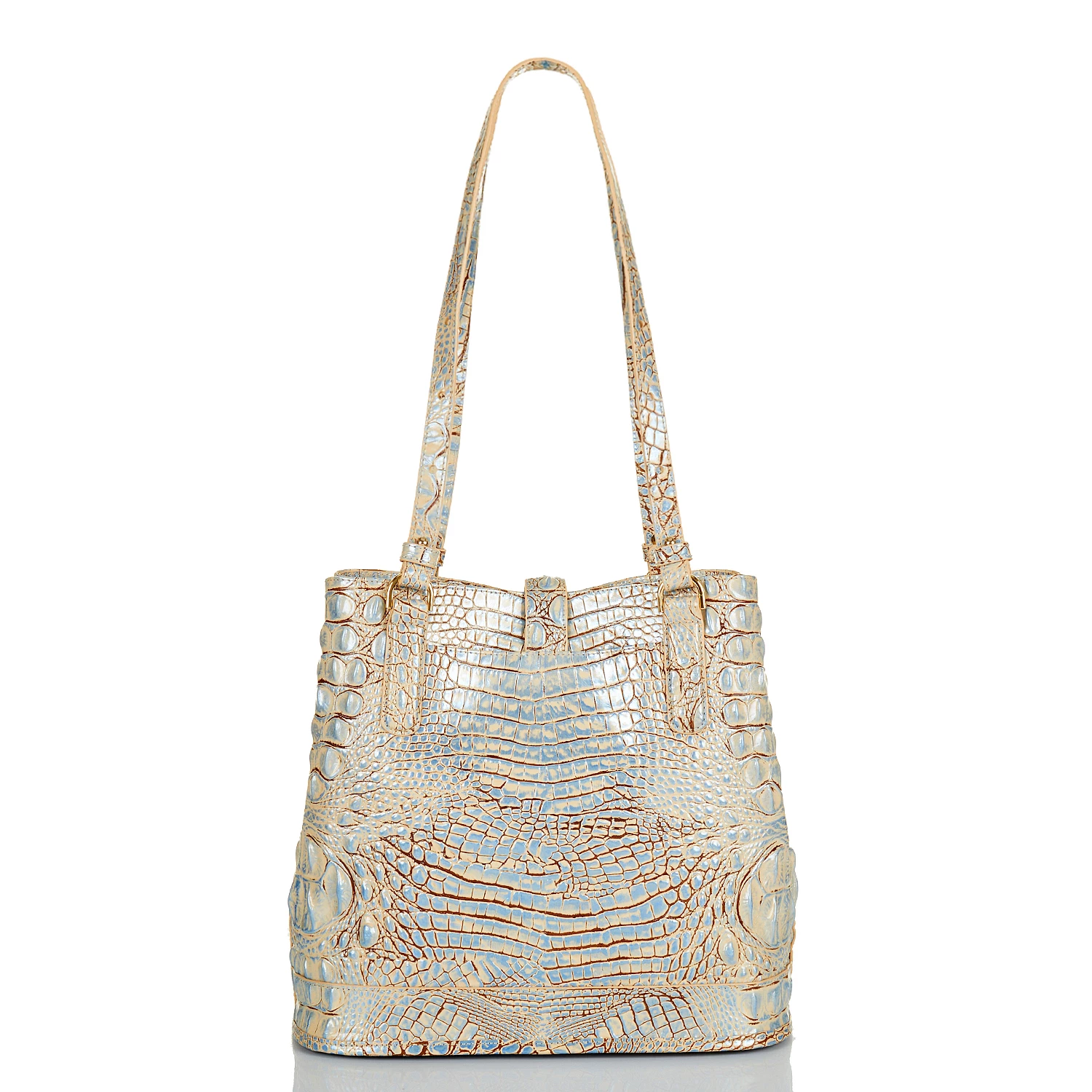 Featured in Blue Haze Melbourne, a soft blue inspired by distressed denim. Blue Haze taps into the trend of washed, vintage denim with a combination of pale blues and soft neutrals. This easy color combo pairs well with all your seasonal favorites. Made with genuine croc-embossed leather.