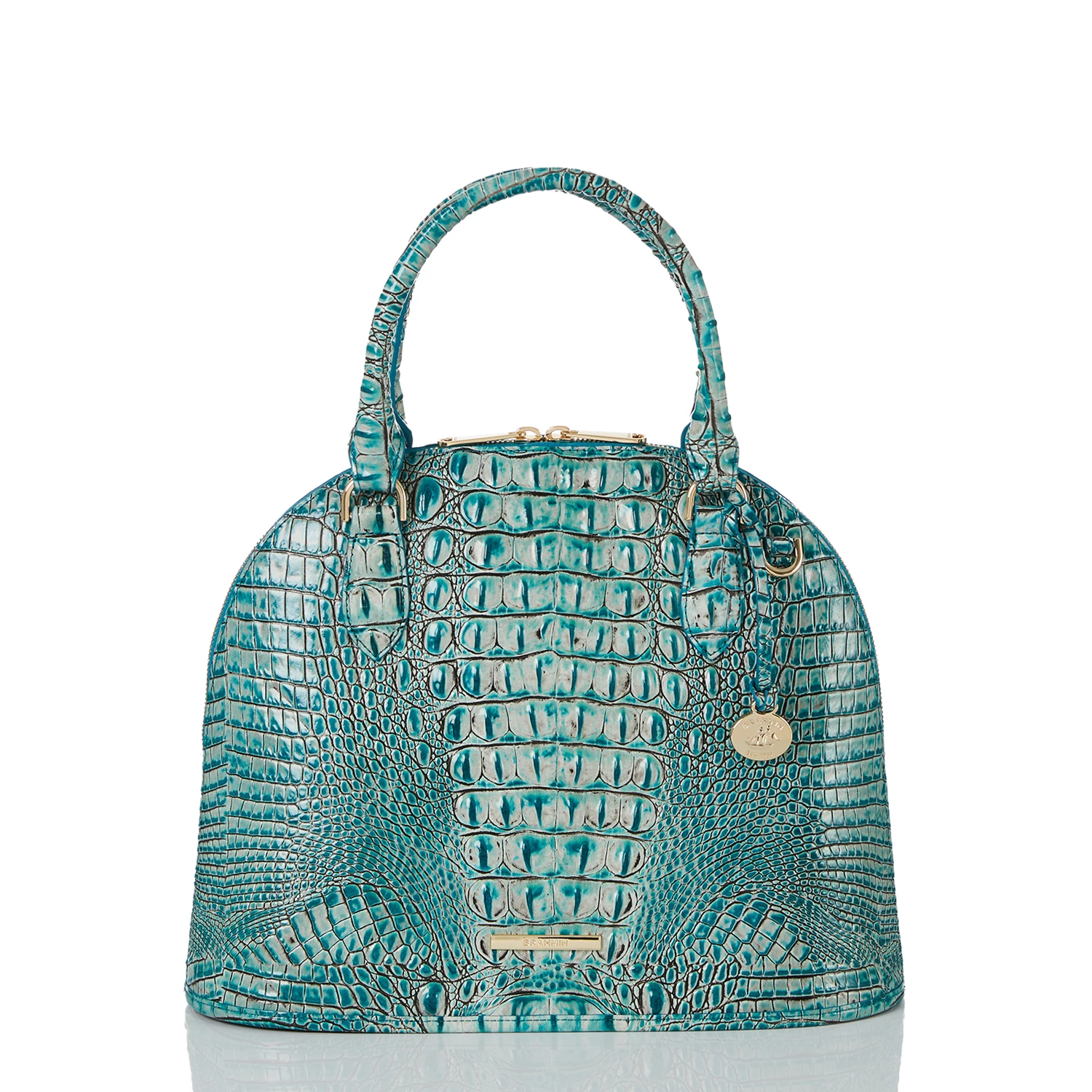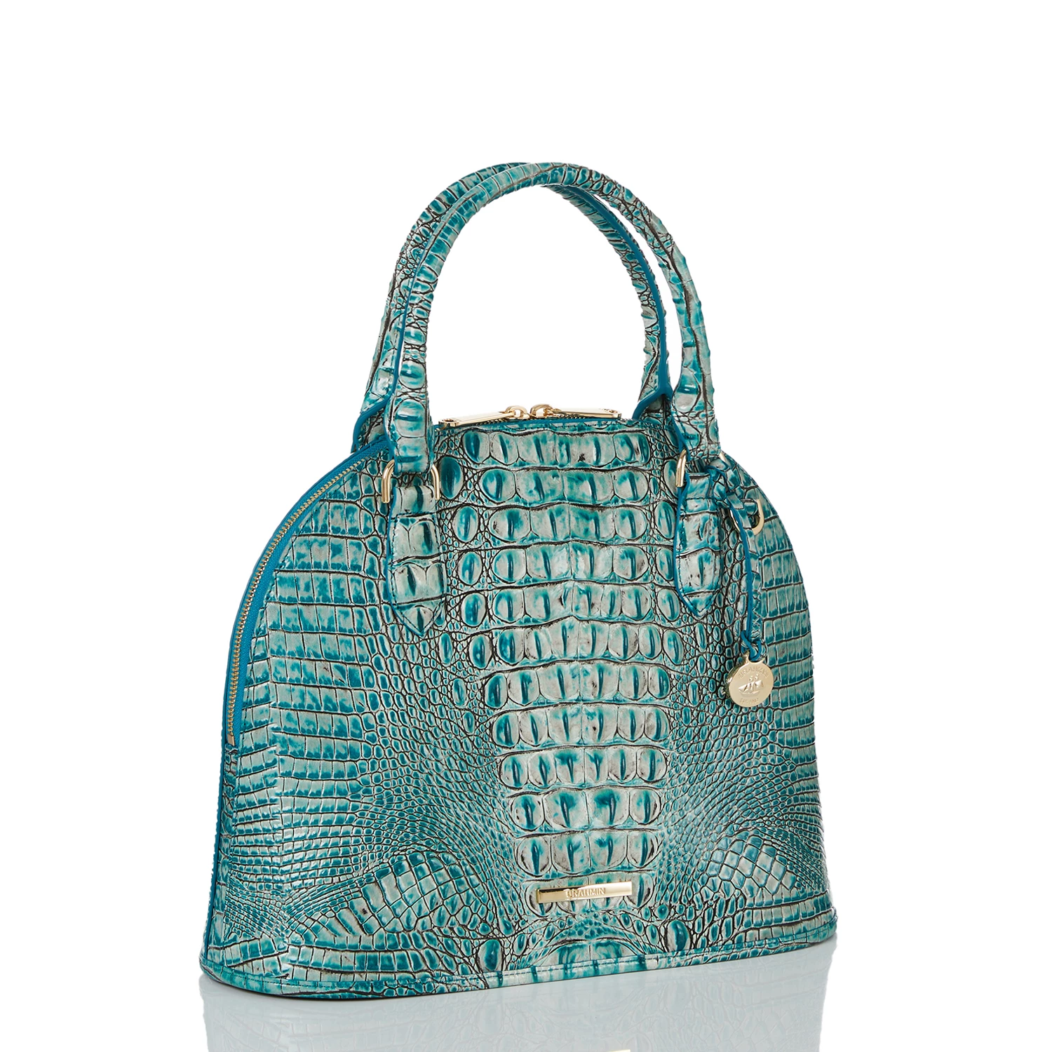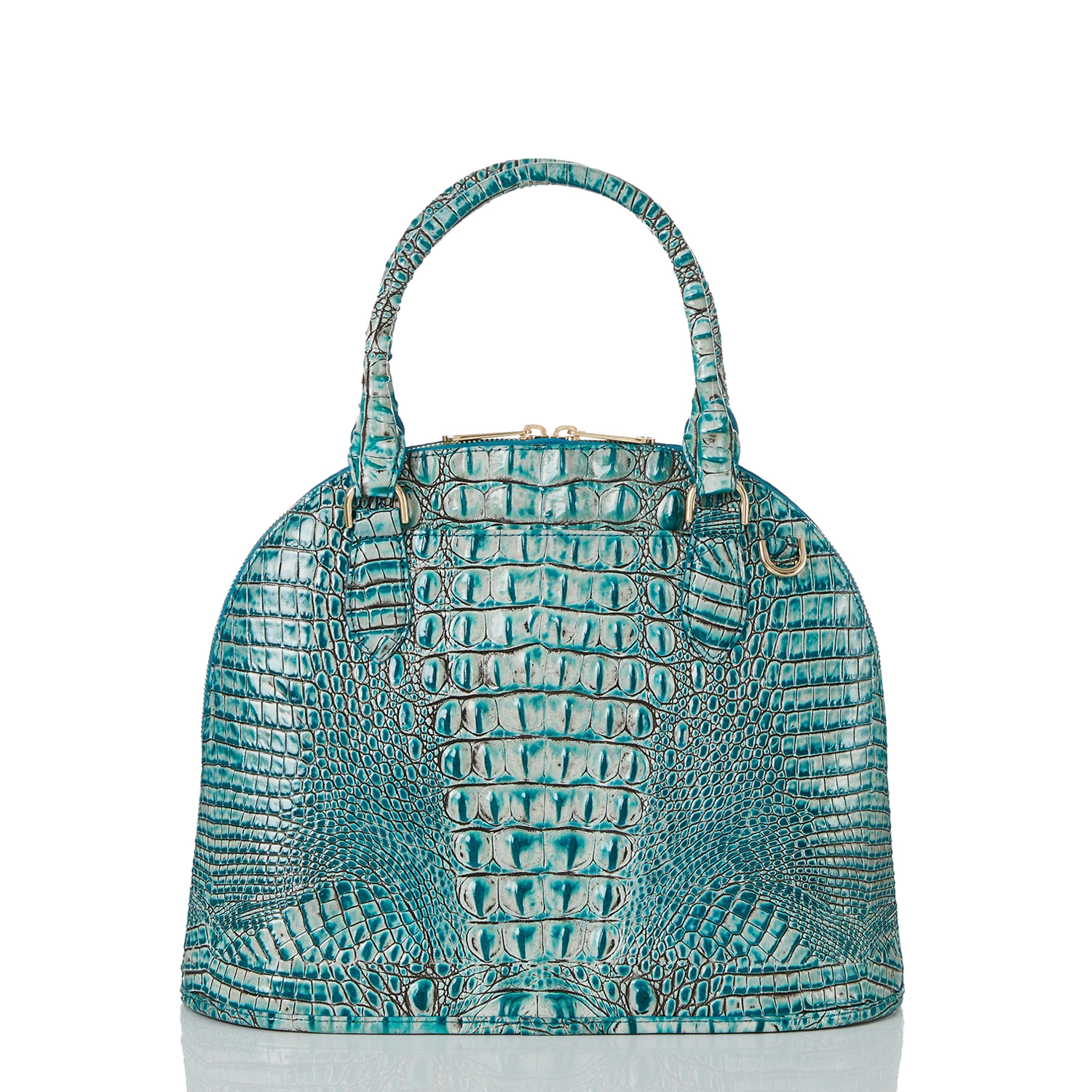 Featured in Mineral Blue Melbourne, a fresh, calming mix of color that instantly captivates. This imaginative combination of color was inspired by the hues, texture, and natural shine found in turquoise stones. Made with genuine croc-embossed leather.