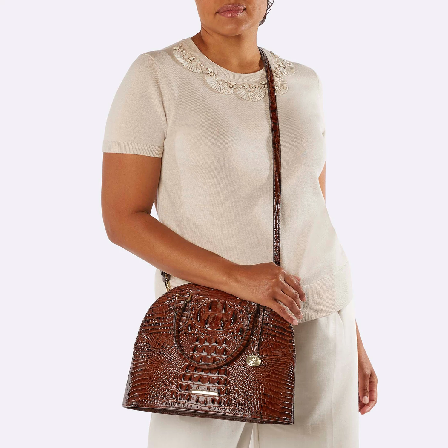 The Georgina is an elegant, vintage-inspired satchel. The simple dome shape brings an air of classic style to this bag. It features a back slide-in pocket for easy access to the things you need through the day and an adjustable, detachable crossbody strap for hand-free carrying.