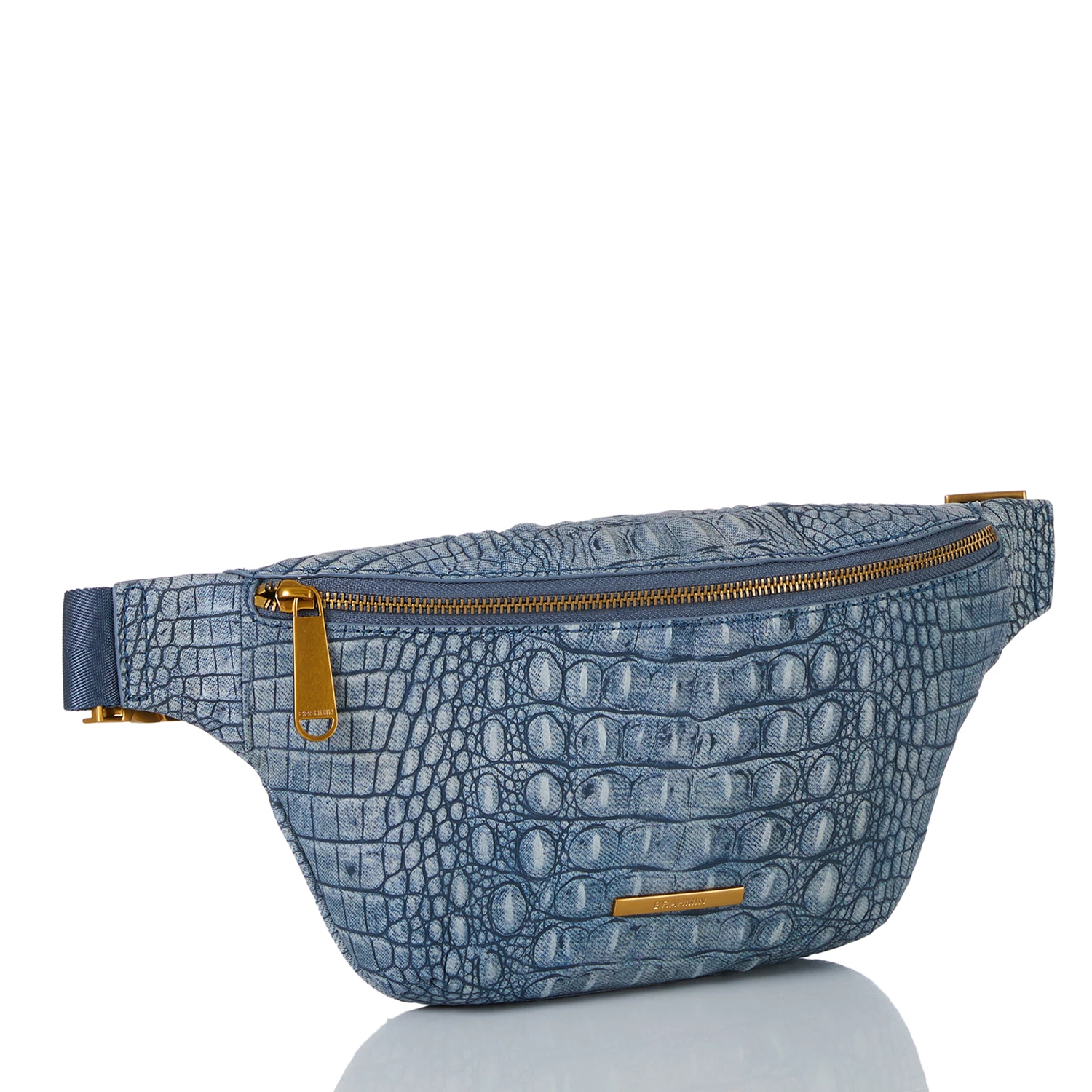 Featured in Light Denim Tetra, our take on the denim trend. This collection is crafted with a soft, easy leather and embossed with a classic Melbourne croc. The soft leather makes this effortlessly casual for everyday ease. The rich blues are inspired by vintage denim and the brass hardware elevates. Thick stitching mimics the details on denim jeans. Made with genuine croc-embossed leather.