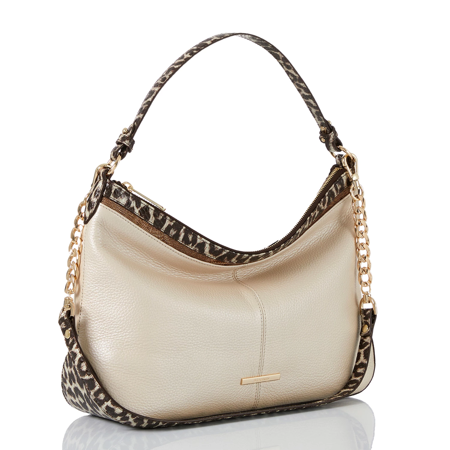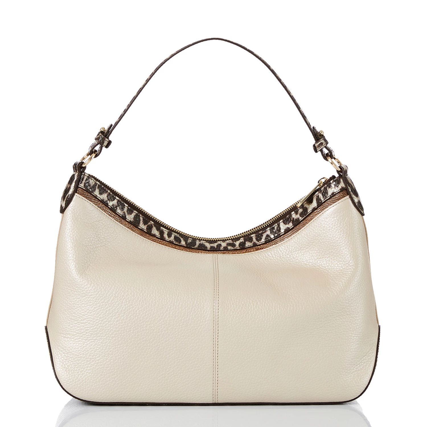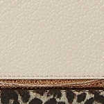Featured in Ivory Iguana Garces, a fresh take on neutral with a pearlized finish. The ivory pebble leather has a pearlescent glow and gets accented with a leopard print trim. This creative combination is perfect for adding a touch of interest to all your ensembles. Made with genuine leather.