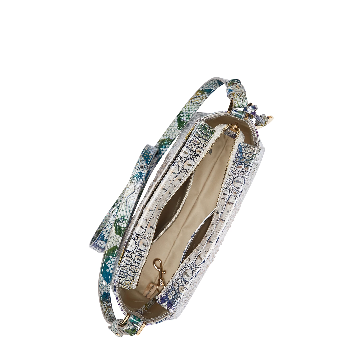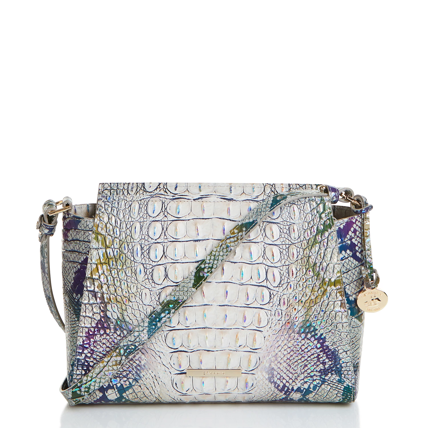 Featured in Spellbound Ombre Melbourne, an extraordinary ombre that starts with light gray and transitions to a prismatic snake print with iridescent metallics. Made with genuine croc-embossed leather.