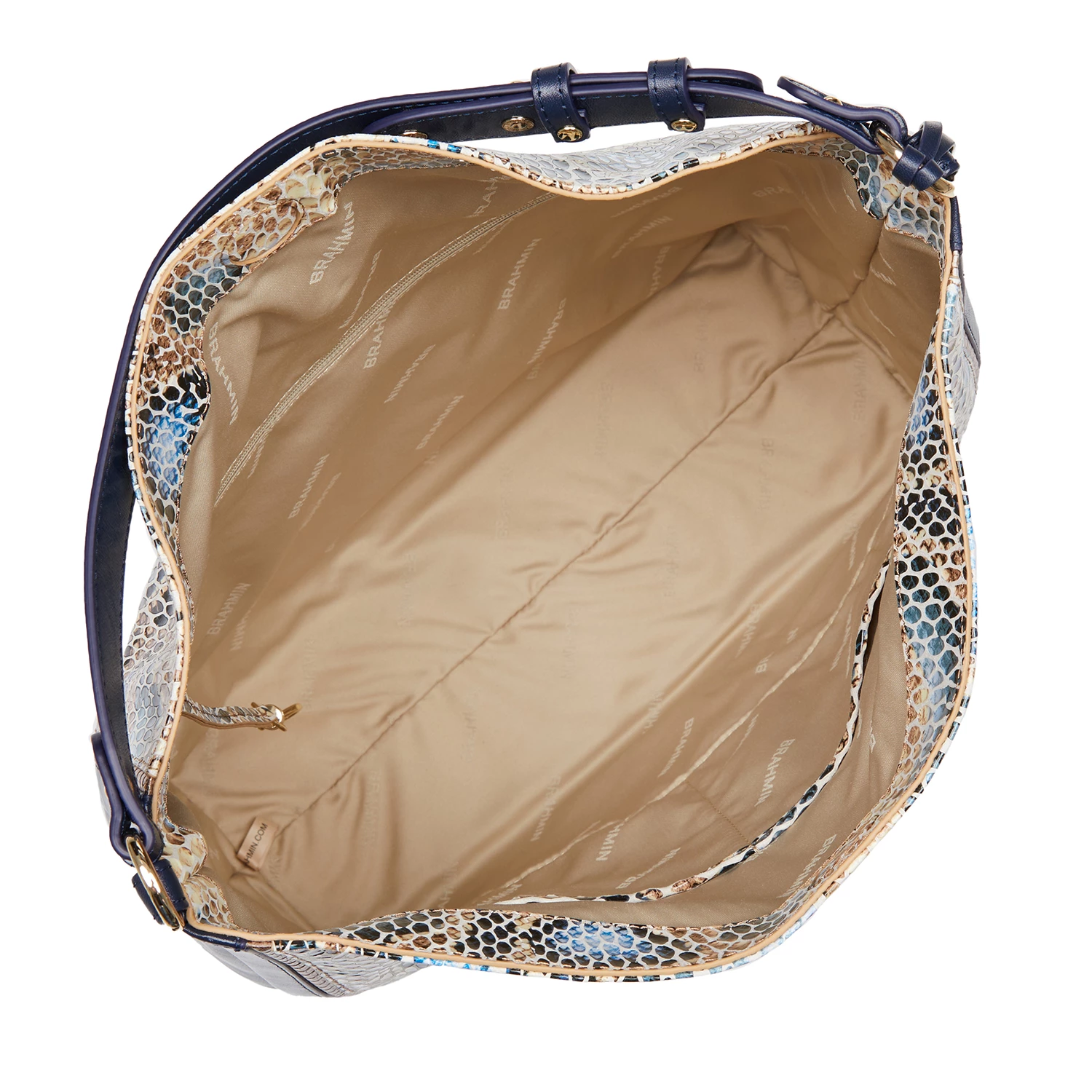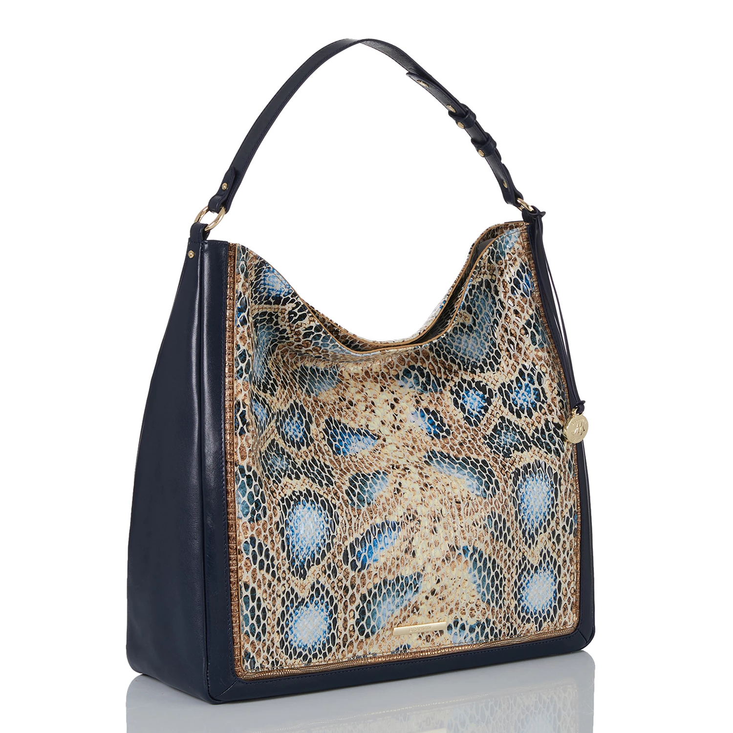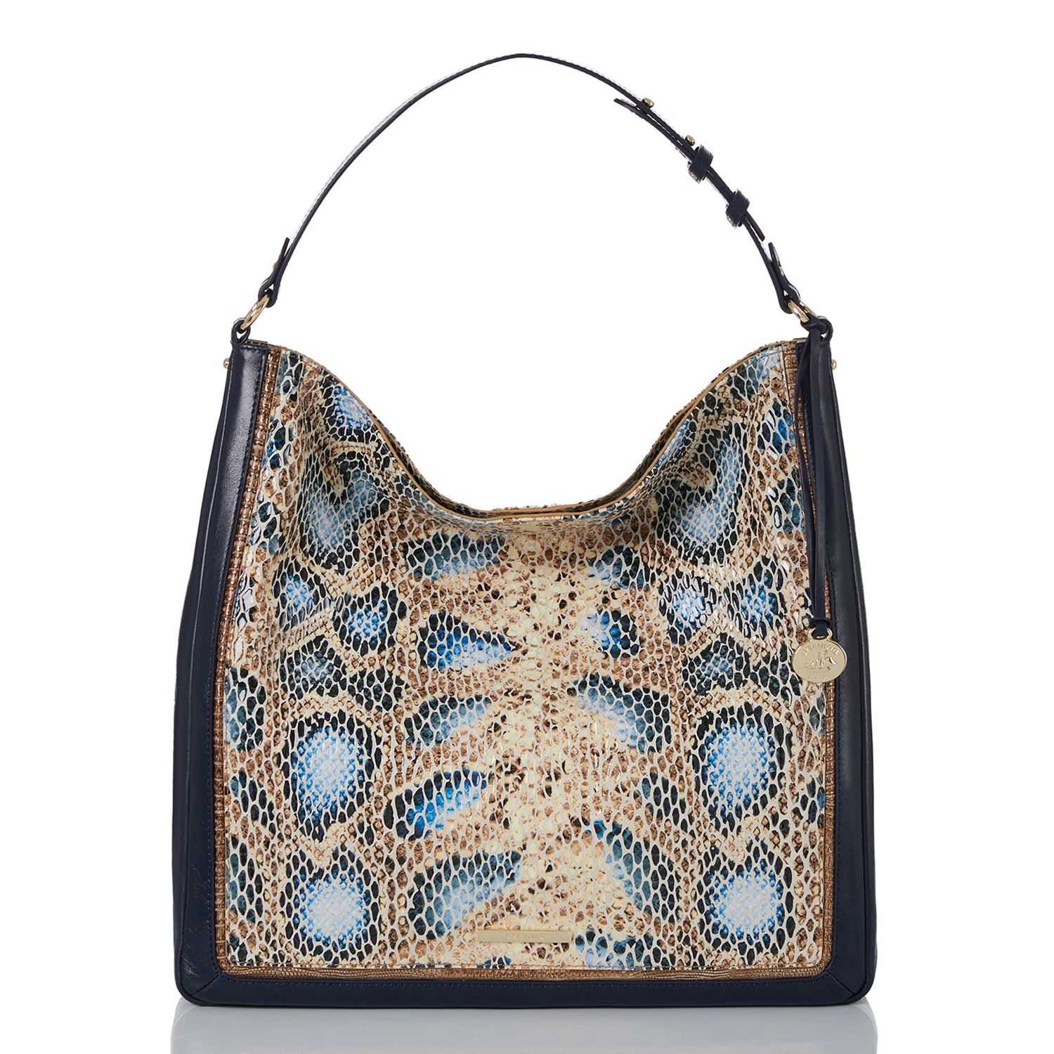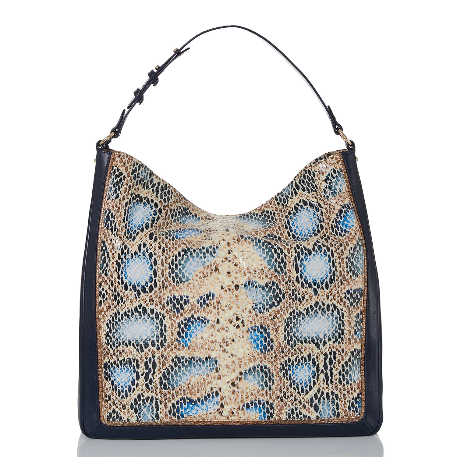 Featured in Deep Azure Delahaye, a soft, easy-to-wear snake print. This blends together deep azure with light blue tones and hints of antiqued gold lizard for a wearable summer snake. Made with genuine leather.