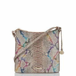 Featured in Multi Knightley, an unexpected, fresh take on seville snake. The classic snake embossed texture is mixed with bright, vibrant colors for a modern reinvention while the neutral base keeps this ultra-versatile and easy to style. The iridescent accents give this a hint of shine for an extra-special touch. Made with genuine leather.
