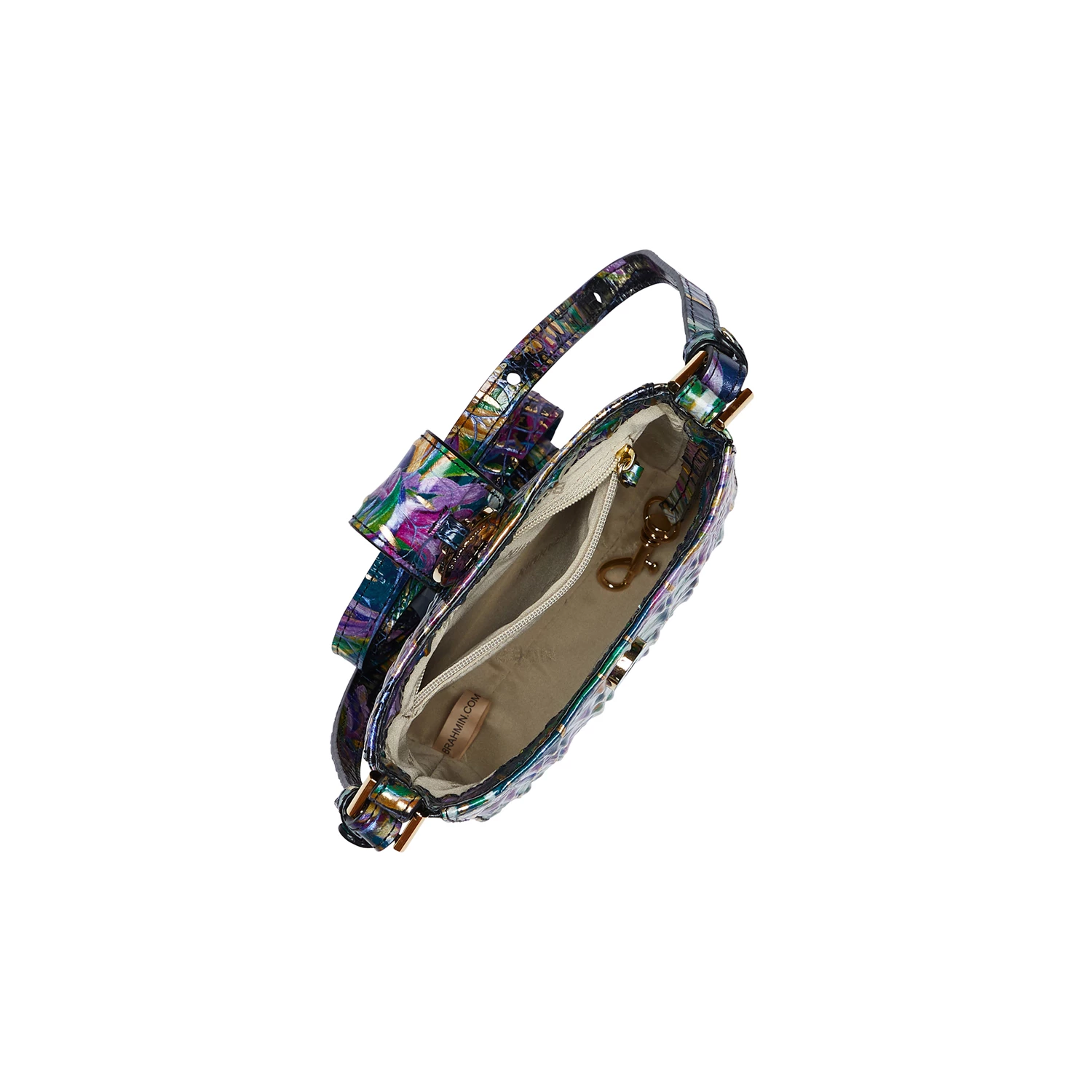 Featured in Visionary Melbourne, a bold, fresh new twist on romantic, feminine florals. This unique floral print combines all our favorite colors of the season, resulting in a telling, emotional work of art. The navy base offers effortless versatility and the gold foil tipping adds instant elevation. Made with genuine croc-embossed leather.