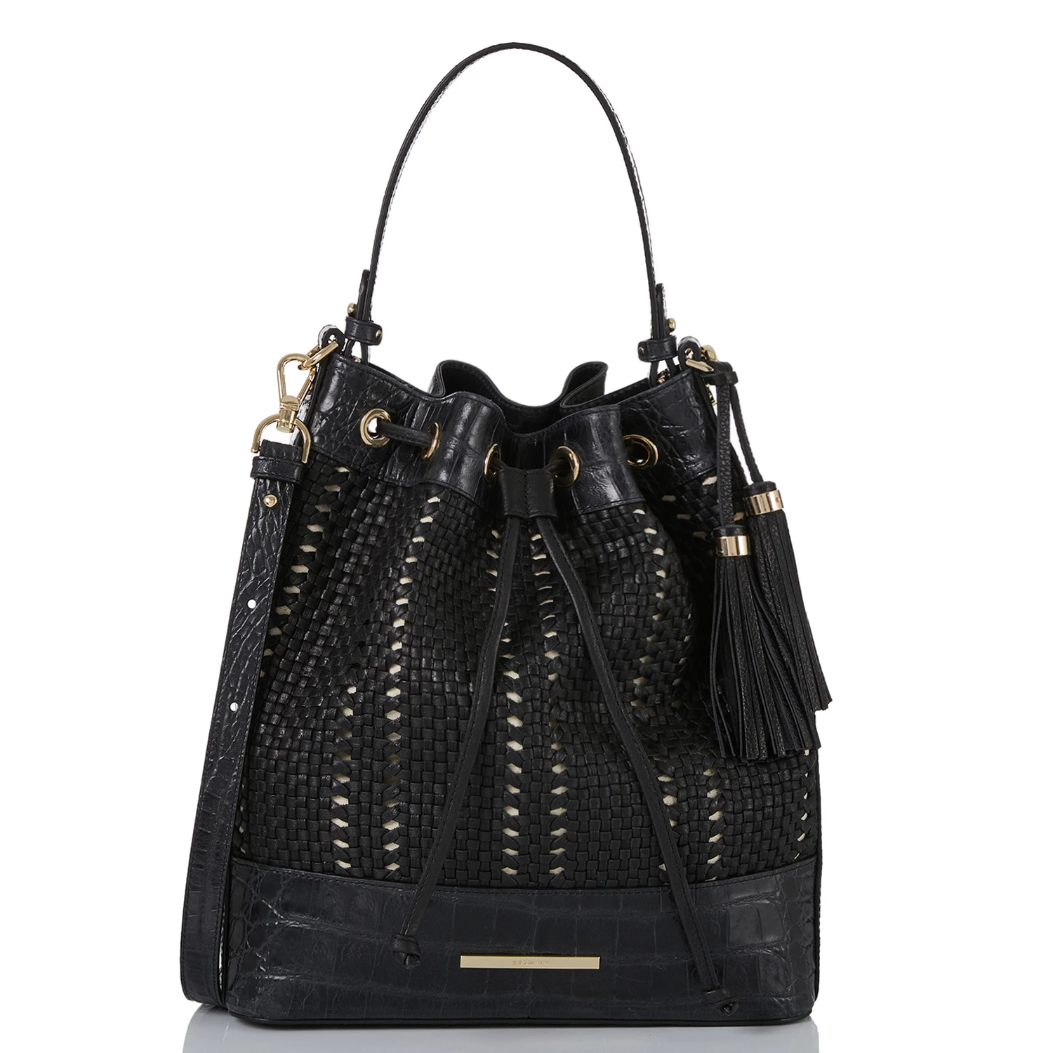 Featured in Black Cascata, a luxurious combination of dynamic fresh textures. This pairs together a smooth black pebble leather with a tonal flat croc and a soft canvas backing. The intricate woven detailing is casual yet sophisticated for an easy-to-wear must-have. Made with genuine leather.