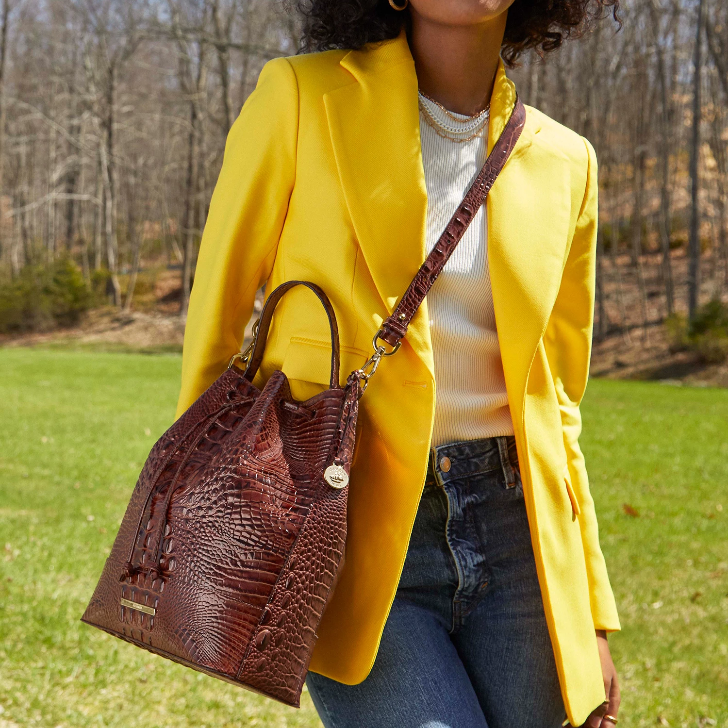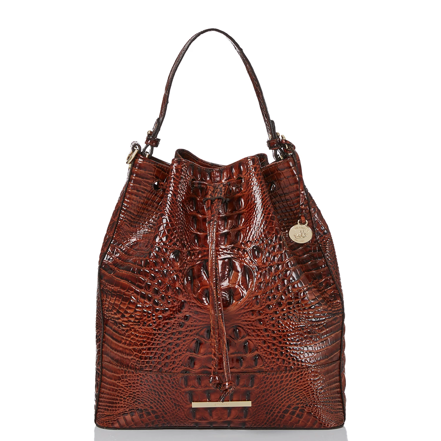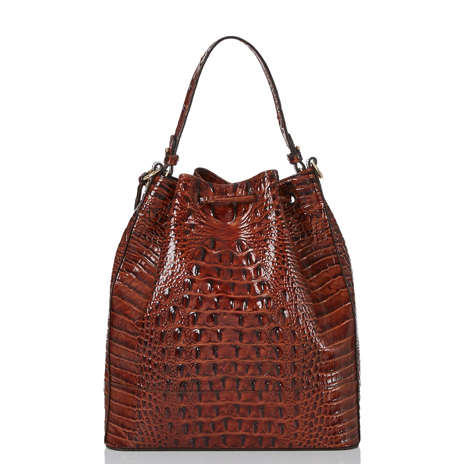 Featured in Pecan Melbourne, our signature croc-embossed leather in a wear-with-everything brown. Genuine leather.