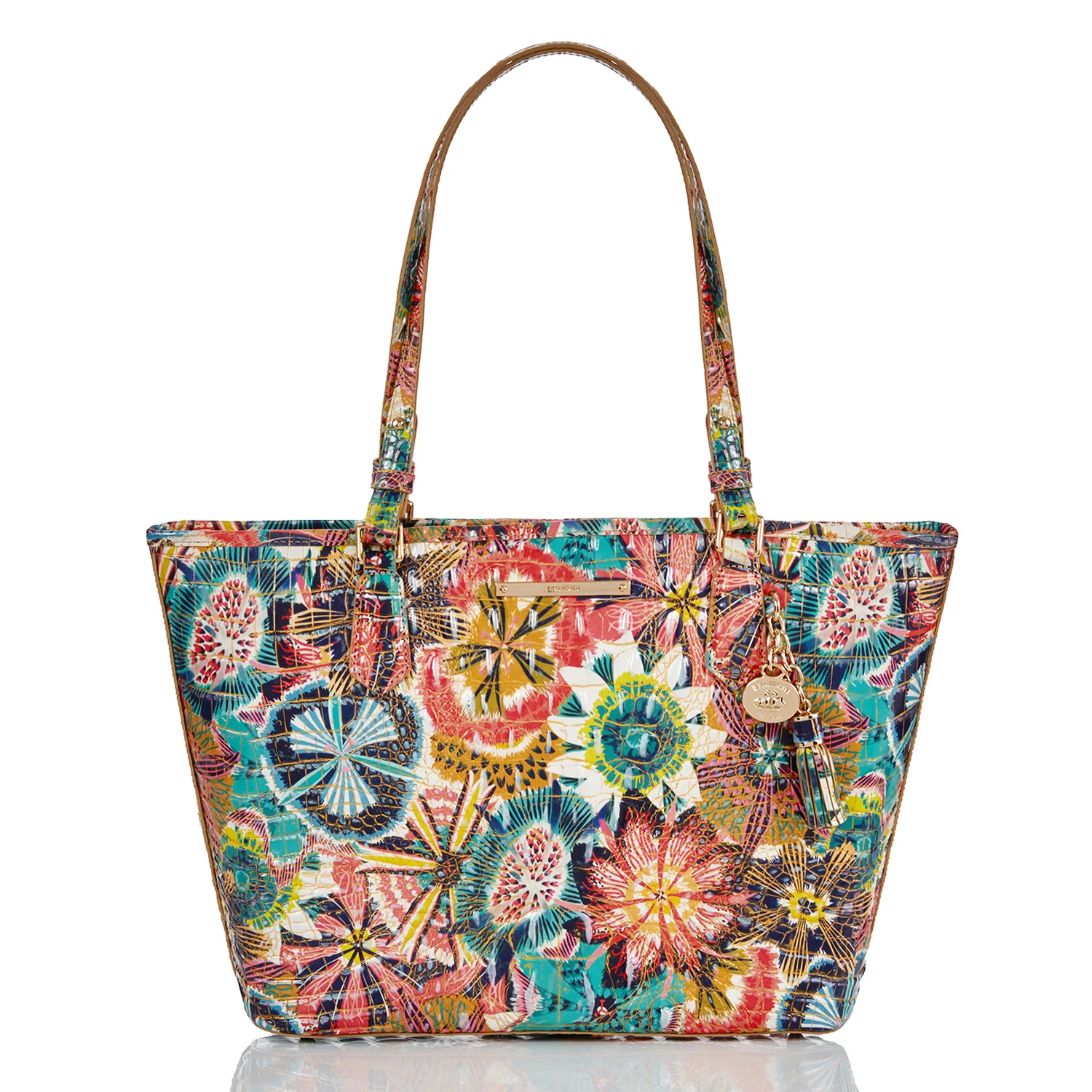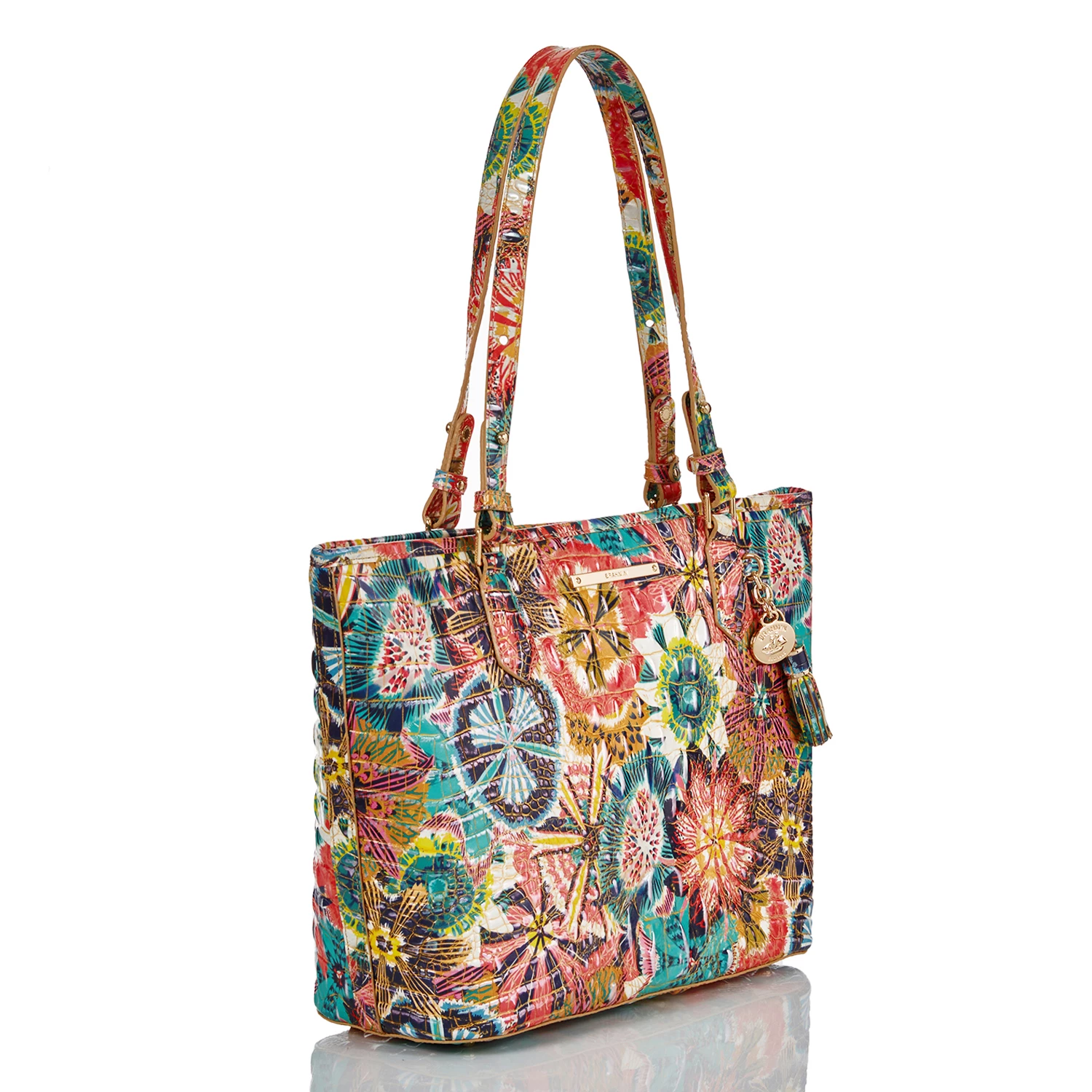 The Medium Asher Tote is a lightweight bag with plenty of interior space. This structured style is polished and practical, featuring Brahmin’s signature organizational details.