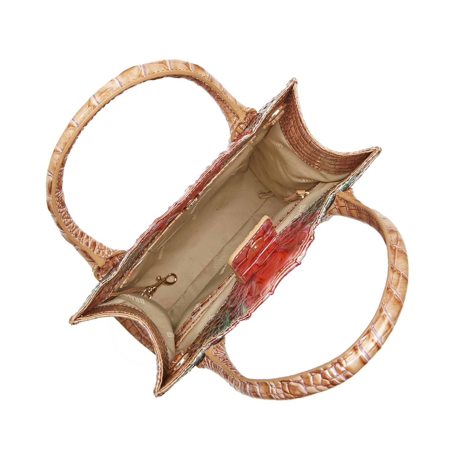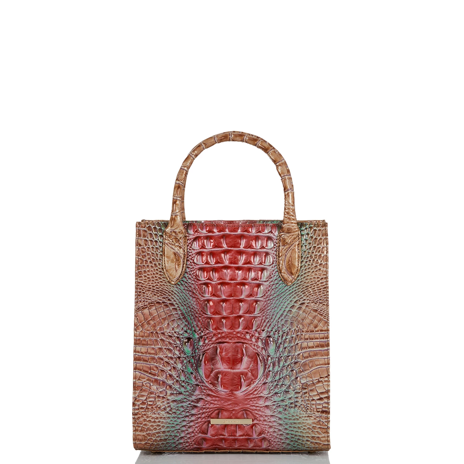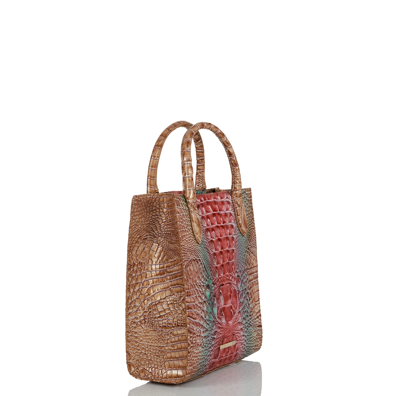 Featured in Lakeridge Ombre Melbourne, a colorful, striking new ombre. Inspired by a desert canyon, Lakeridge blends together an unexpected combination of color that captivates. The ombre brings together neutral and Red with a touch of Blue for an elevated accent. Made with genuine croc-embossed leather.