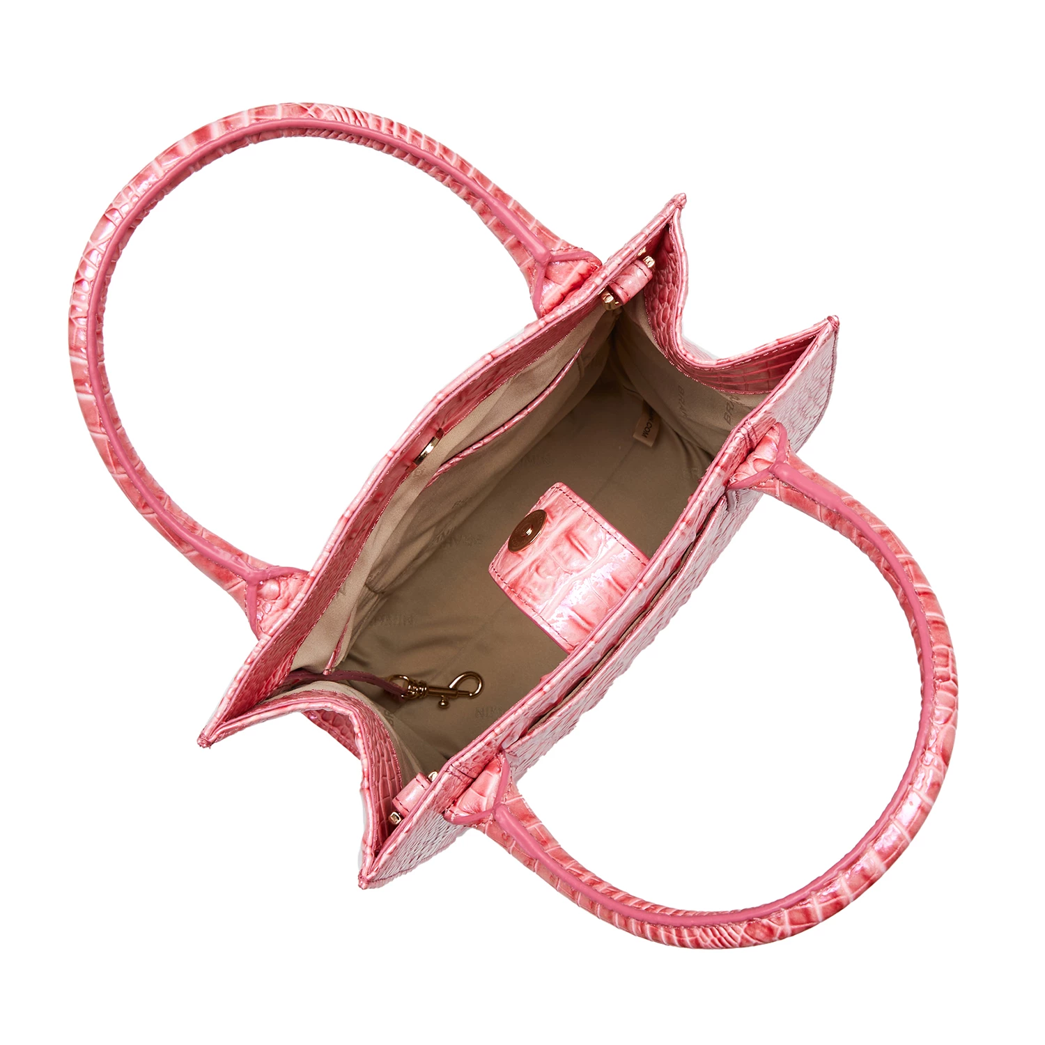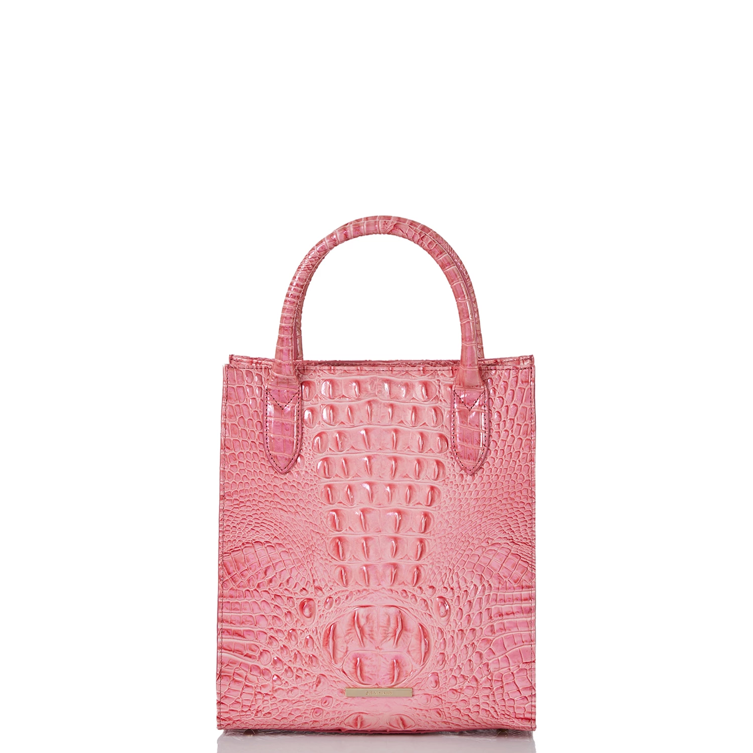 Featured in Pink Punch Melbourne, a refreshing coral pink with an iridescent shine. This is our fresh twist on a trending color palette of the season. The soft, coral pink takes on a new look with the iridescent foil that brings just a hint of shine. Made with genuine croc-embossed leather.