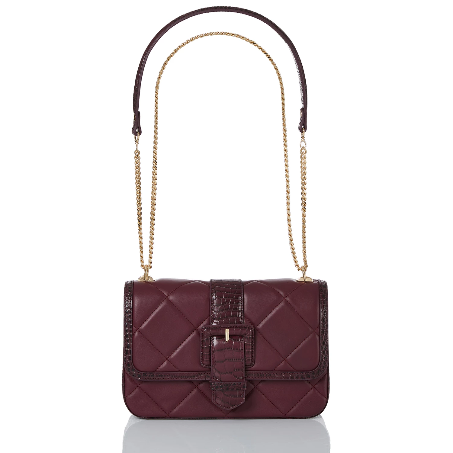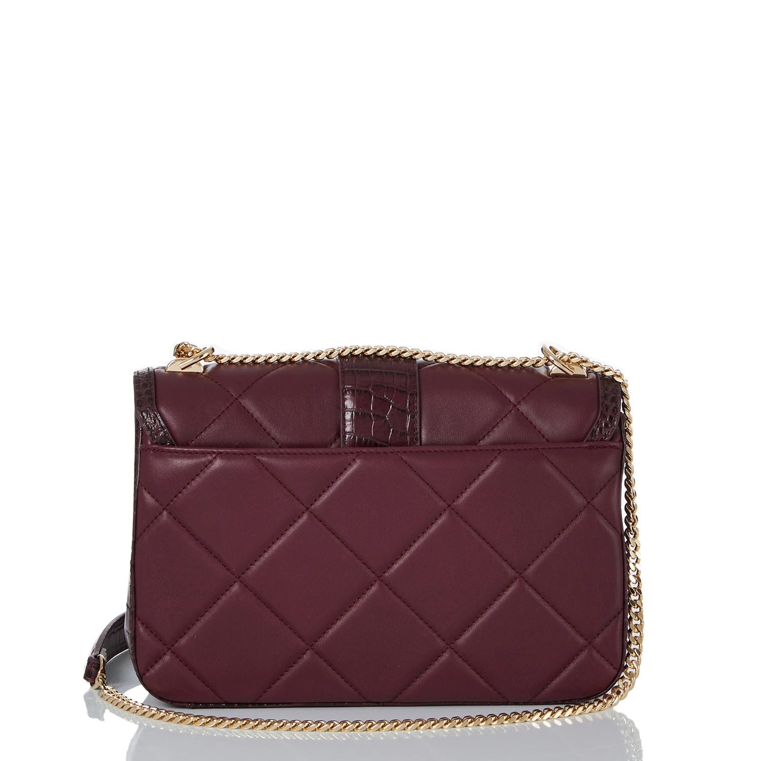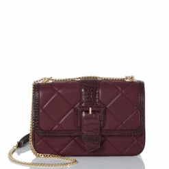 Featured in Burgundy Duval, a luxurious twist on the quilting trend. A rich, deep burgundy color with a flat croc trim and quilted nappa leather. The saturated eggplant purple is the perfect transitional color for summer and fall. Made with genuine leather.