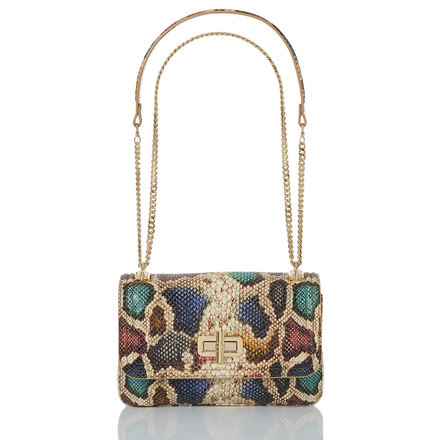 Featured Multi Caloosa, an Italian multi-colored snake with pops of neutral for versatility. The vibrance and energy of the colors is well-balanced with the soft, neutral base. Carefully placed trapunto detailing adds luxury to the look. Made with genuine leather.