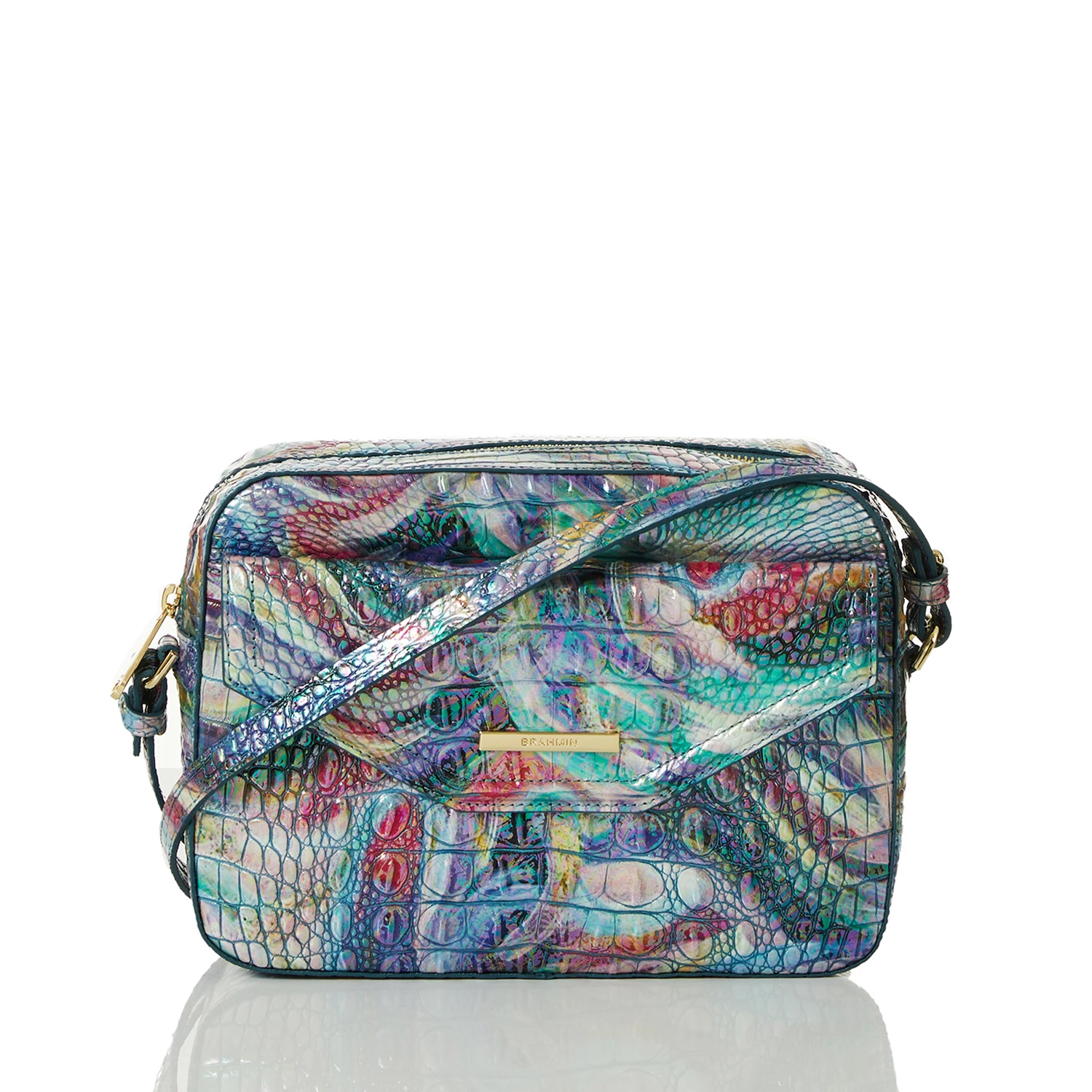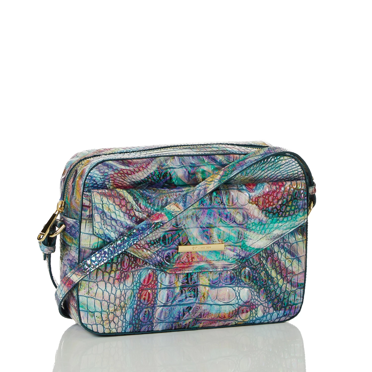 Featured in Elope Melbourne, a creative combination of color designed to ignite the imagination. Enter a world of whimsy with this playful print that has iridescent shine bringing a glow to the season. Made with genuine croc-embossed leather.