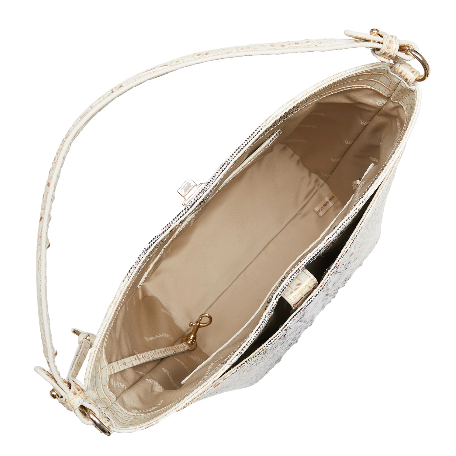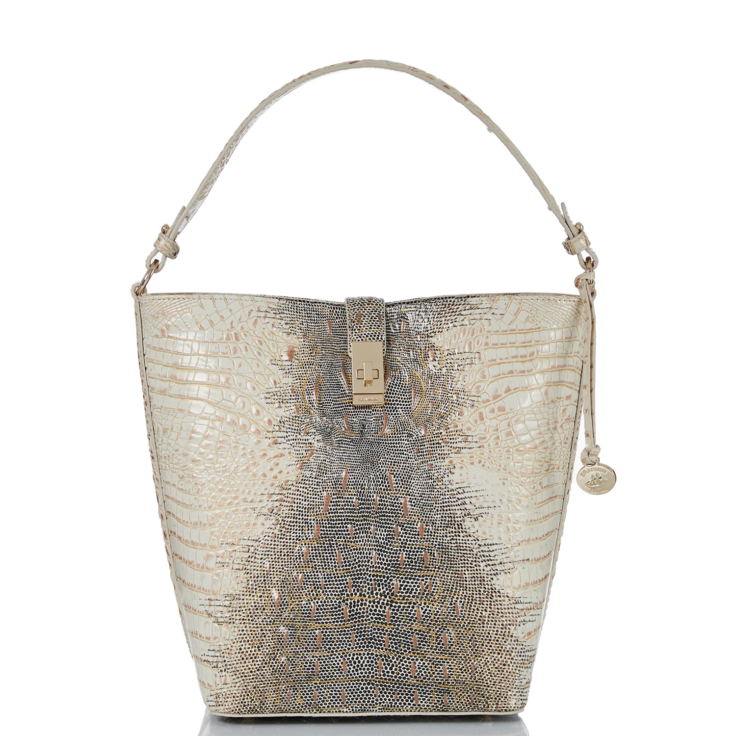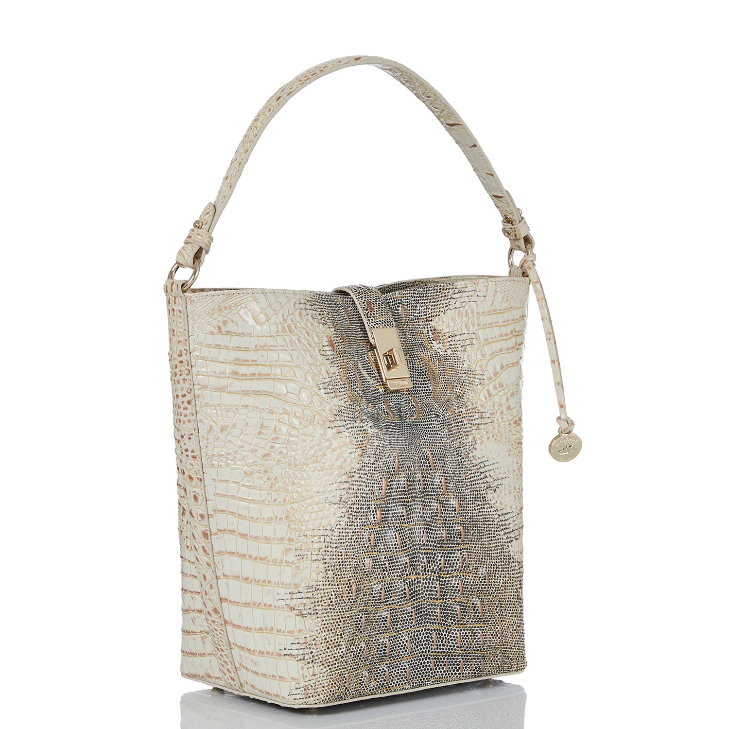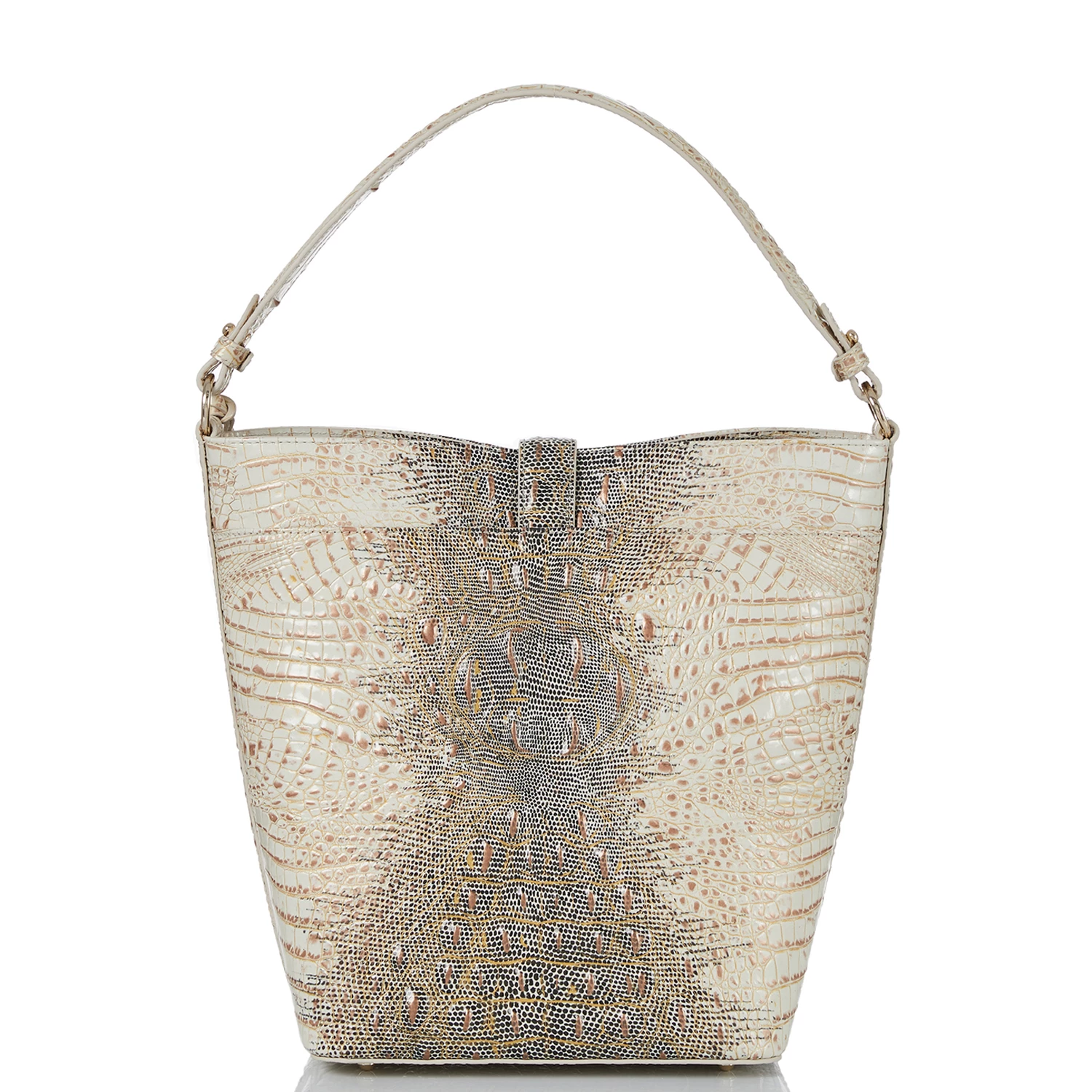 Featured in Ivory Iguana Melbourne, an elevated new neutral. This versatile warm cream features gold accents that lend luxury to the look. This also features hints of a lizard print for added dimension. Made with genuine croc-embossed leather.