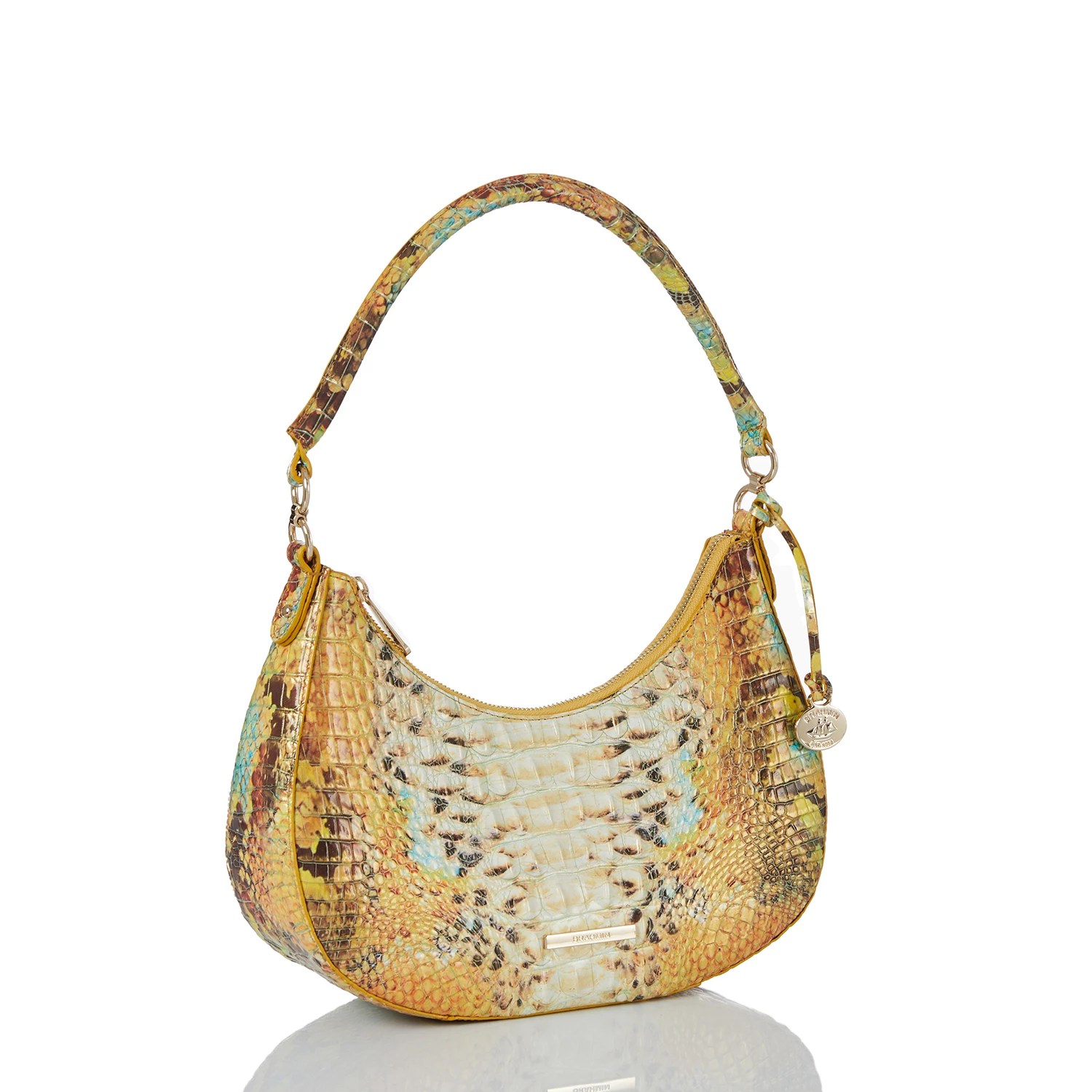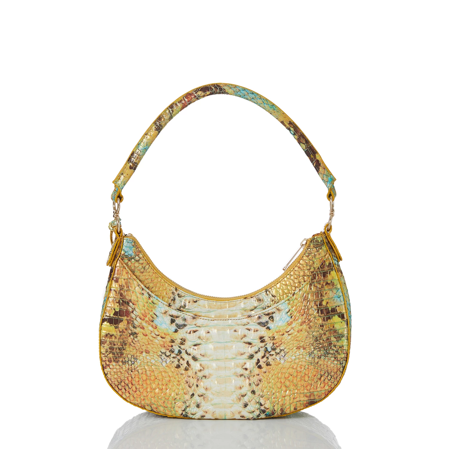 Featured in Sunny Viper Melbourne, a colorful new take on snake. Sunny Viper embraces the warm energy of the season with a vibrant array of colors. From the warmth of mango to the energetic pop of blue, this brings together our favorite new hues of the season. Made with genuine croc-embossed leather.